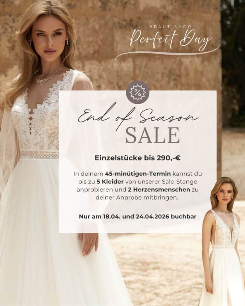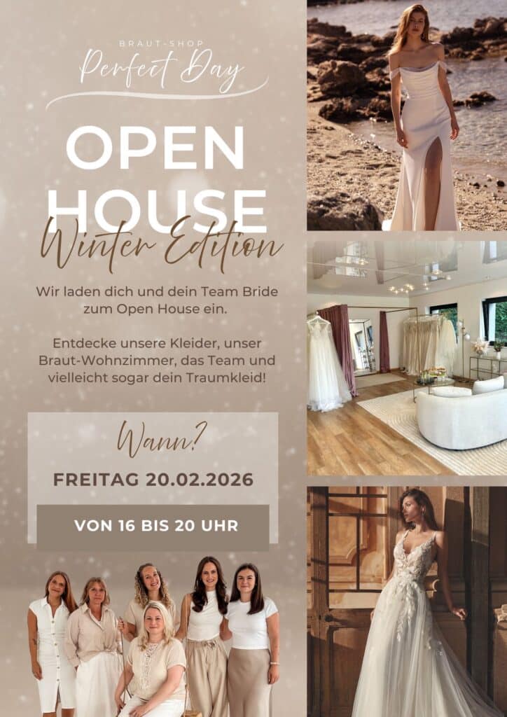 Deine Wünsche – Ein Brautkleid ist ein ganz besonderes Kleidungsstück und deshalb sollte die Beratung fachkundig und ehrlich sein. Wir beraten Dich zu Schnitt und Stil, Größe und Budget. Du sollst nach Deinem Termin bei uns den Laden als glückliche Perfect-Bride verlassen.